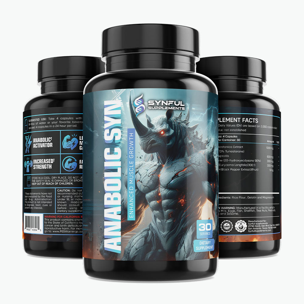 Anabolic Syn is a powerful natural anabolic activator designed to accelerate lean muscle growth, strength, and recovery — without hormones or synthetic steroids. Built with clinically backed botanical extracts like Turkesterone, Ecdysterone, and Fadogia Agrestis, this formula helps unlock your body’s anabolic potential and push performance to the next level.